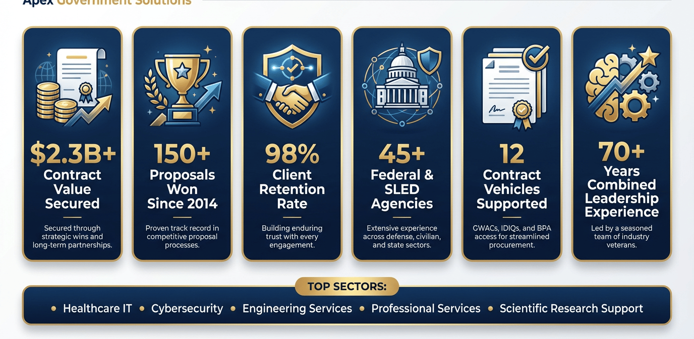 Our deep understanding of these agencies' procurement processes, evaluation criteria, and mission requirements positions our clients for consistent success.